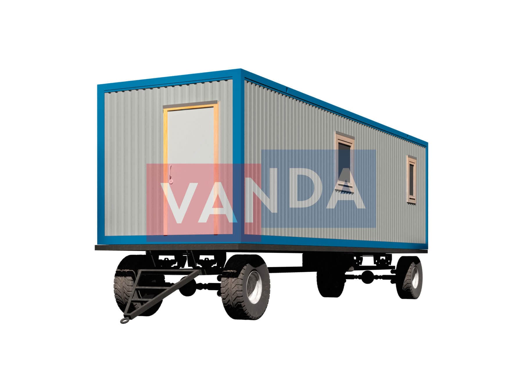 Строительный вагончик на шасси 9,0 x 2,4 изготавливается из несущего каркаса (верхняя и нижняя обвязка): швеллер 100х50х3 мм., угловые стойки: сложно - гнутый угол 90х90х3 мм., крыша блок-контейнера: металл сварной 0,9-1 мм., качественная наружная отделка: оцинкованный профлист, внутренняя отделка стен: ЛДСП, внутренняя отделка потолка: Панели ПВХ, вспомогательный деревянный каркас (стены): брусок 40х75 мм., лаги пола: обрезная доска 40х100 мм., лаги потолка: обрезная доска 40х100 мм., выполнено утепление: Минеральная вата «ISOVER» – 50 мм. и пароизоляция: плёнка техническая, черновой пол состоит из: обрезная доска 20 мм. (2 сорт), чистовой пол покрыт: ДСП строительное 16 мм., отделка пола выполнена из качественных материалов. Контейнер комплектуется окнами: деревянное, двойное остекление 800х1000, входной дверью: ДГ 21-8 обшита снаружи оцинкованным листом, врезной замок и внутренними дверями: ДГ 21-8 (при наличии перегородки). Если в БК присутствуют перегородки, то для них используется: брусок 40х50 мм.